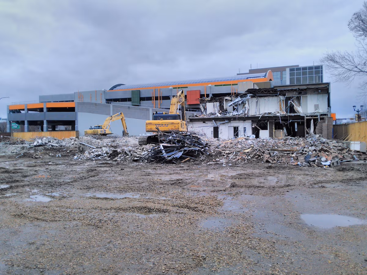 The project site was shared on one side by the historically significant Parsons House that required protection during execution of the demolition. A vibration monitoring and dust control plan was developed and implemented resulting in no degradation to the Parsons House.